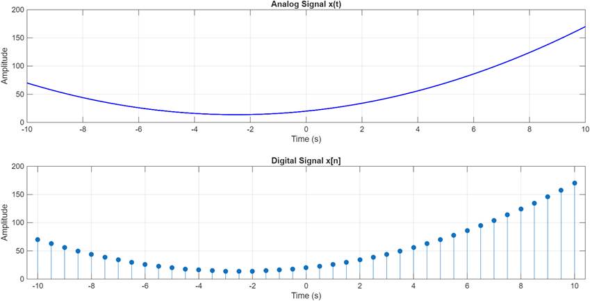 A més, en funció de la naturalesa de la variable independent parlarem de senyals analògics, on la variable és contínua i pertany a tots els nombres reals. O bé de senyals digitals, on la variable és discreta i pren un conjunt de valors finits.